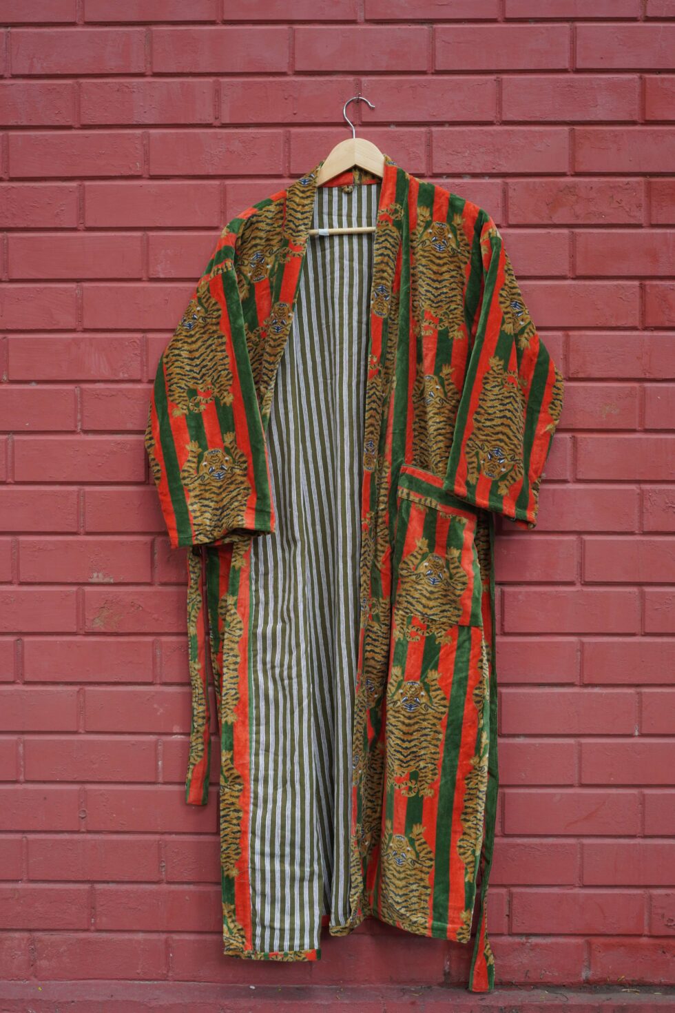 Womens Red Green Velvet Embroidered Jacket with Floral Design