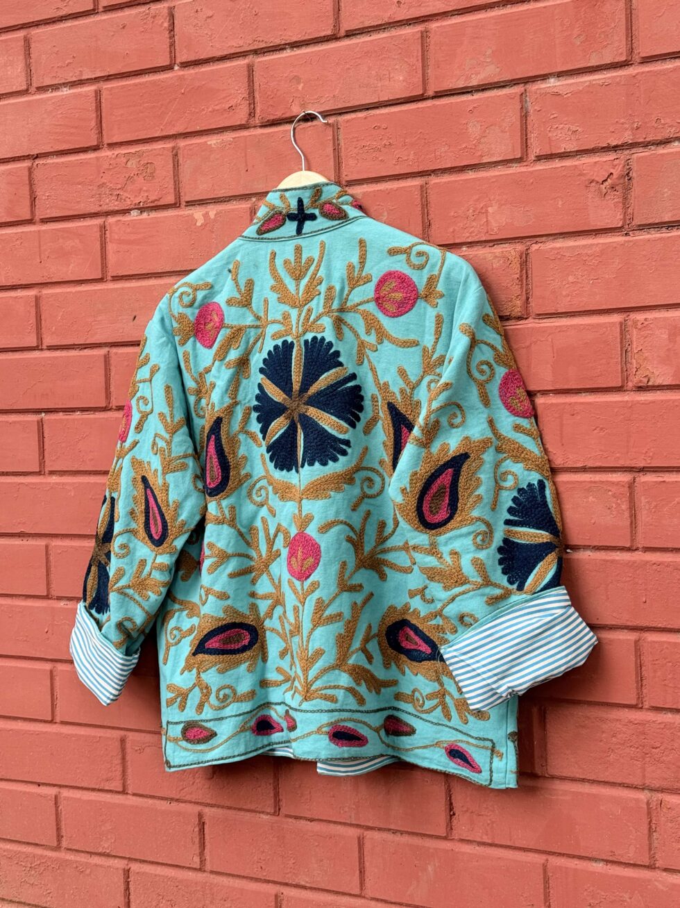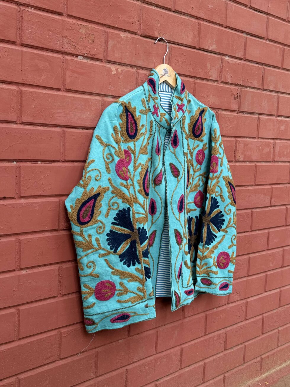 Luxurious velvet jacket featuring intricate Suzani embroidery. Perfect blend of elegance and tradition โ€” ideal for festive and ethnic occasions.