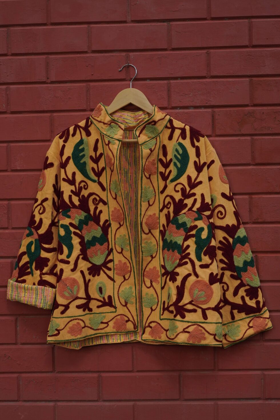 Luxurious velvet jacket featuring intricate Suzani embroidery. Perfect blend of elegance and tradition โ€” ideal for festive and ethnic occasions.